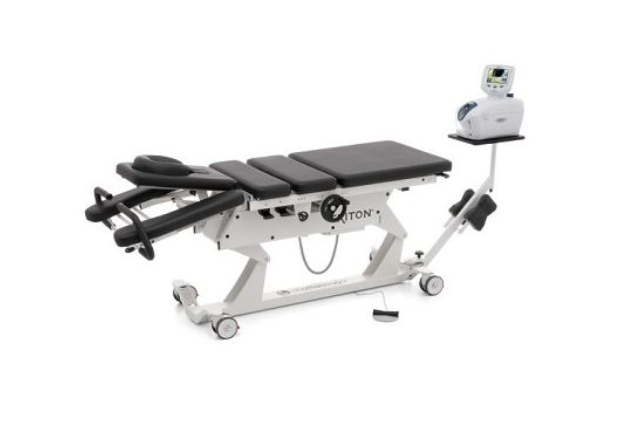 The Triton DTS 6M Decompression Table is an advanced traction/decompression platform designed to help your care team deliver precise, comfortable spinal traction for the lumbar and cervical spine when clinically appropriate. Using controlled distraction forces (static, intermittent, or cyclic patterns), decompression may help reduce pressure on structures that contribute to back/neck pain, including symptoms that radiate like sciatica—based on your provider’s evaluation and treatment plan.
